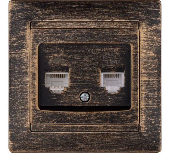 Расходные материалы для телефонной розетки TDM ELECTRIC Лама RJ11 + компьютерная RJ45 старинная бронза SQ1815-0760
