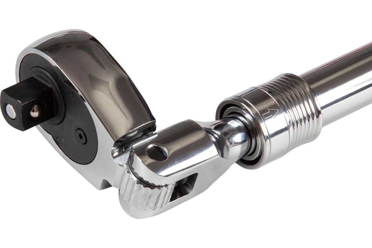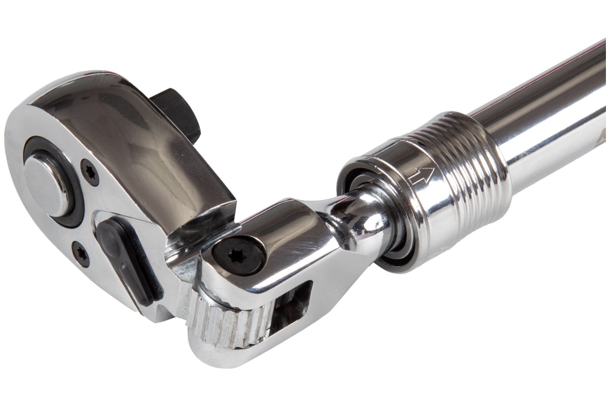 Шарнирное соединение основного корпуса и головки с возможностью поворота на 180 градусов и фиксатором положения значительно повышает удобство работы в труднодоступных местах. Телескопическая конструкция рукоятки с регулировкой длины тоже позволяет обслуживать труднодоступный крепеж, а также увеличить рычаг для приложения большего усилия при затрачивании меньших сил со стороны мастера.
