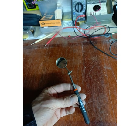 Отличное маленькое зеркальце. Телескопическая ручка. Для работы правда приходится приноровится( маловато стеклышко 3 см). В целом для нечастого использоаания девайс супер.
