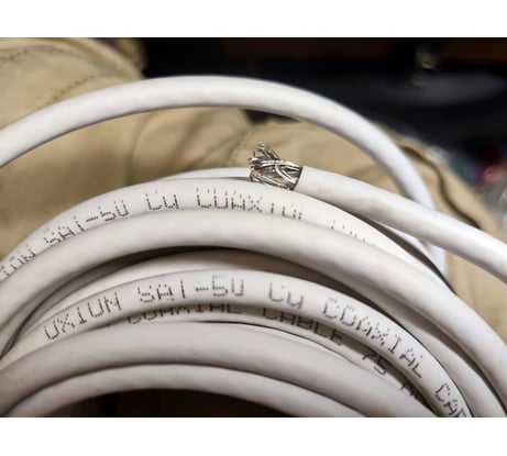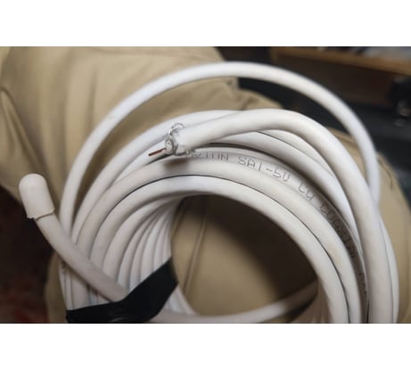 Медные жила, есть фольга и плотная оплетка. Качество приёма с ним отличное. Кабель очень гибкий, им хорошо обходить углы, однако из-за неплотной вспененной внутренней изоляции он слегка плющится на крутых изгибах, поэтому аккуратнее. Легко разделывается при монтаже.