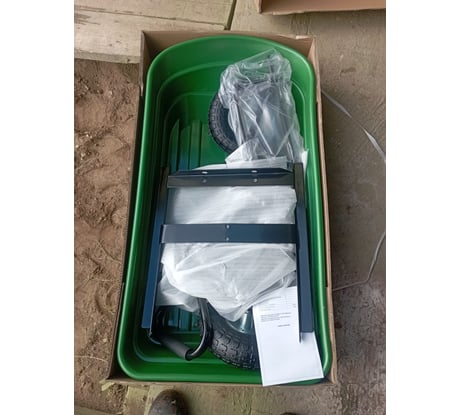 Все детальки присутствовали, сборка особых проблем не создала. Хорошая тележка для старого,больного и ленивого человека. При использовании отсутствует лишняя нагрузка на руки, ноги и спину. Невысокая высота загрузки.