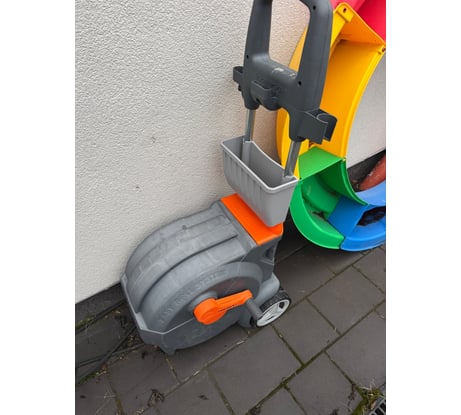 В комплекте идёт целых 40 м шланга, можно легко поливать большие участки, не таская лишний удлинитель. Механизм скрутки шланга реально облегчает сматывание его внутрь. Направляющая для укладки шланга работает хорошо. Тележка очень устойчива.