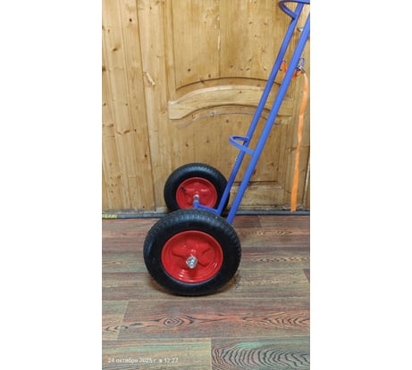 Хорошая баллонная тележка, ремень крепко фиксирует, не надо держать баллон руками. Колёса крутятся плавно, и даже пороги проходят.