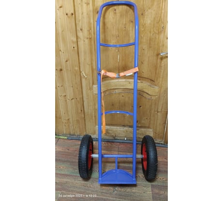 Используем для транспортировки газовых баллонов на производстве. Очень продуманная конструкция — ремень надёжно держит, колёса прочные.