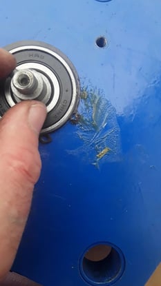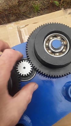 Начитавшись отзывов про отсутствие смазки, полез в подшипники. Первое, что удивило - все четыре колёсных подшипника разных производителей. Вскрыл - состояние тоже самое разное, как просто очень давно лежалые, так и откровенное б/у (вот на фото у как-то попавшего сюда бу-шного SKF France закаменевший пыльник просто рассыпался при демонтаже). Сложилось мнение, что подшипники производитель кареток приобретает на китайских разборках или пунктах сбора металла. С шестернёй привода всё сильно хуже: металл отвратительный, царапается отвёрткой, зубья все в заусенцах, до зубьев колёс достают с трудом, вал в подшипниках имеет люфт 1мм, см. видео!!! Мало того, он не круглый, а овальный в сечении. Мотор "благодаря" алюминиевой обмотке очень лёгкий, прямо неправдоподобно лёгкий, работает, но сколько протянет - неизвестно. Вывод: как заготовку использовать можно, с полной переборкой и обслуживанием подшипников, а вал с шестернёй только под замену - заказывать изготовление нового.