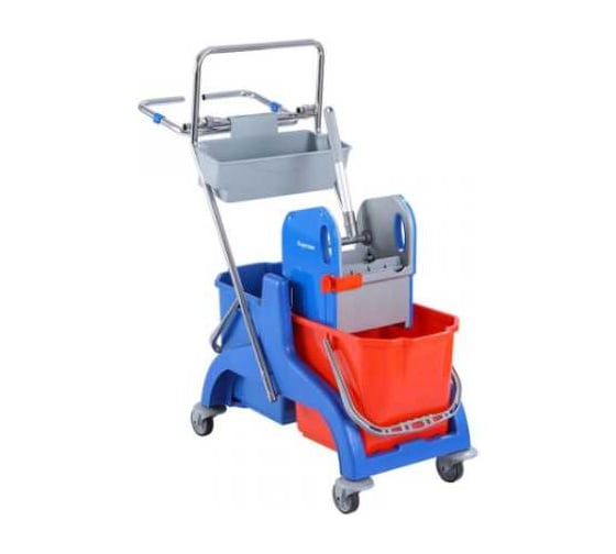 Тележка двухведерная с отжимом, лотком для химии и держателем для мешка, 2 ведра по 25л.