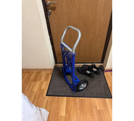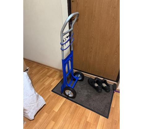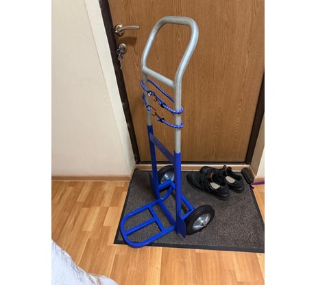 Покупал для матери ей 50 лет чтобы перевозить урожай. Она хотела лёгкую тележку, 5 килограмм вес, её устраивает. Ручка телескопическая. Колеса влезают на пандусы(металлические ребристые пластины устанавливаемые на лестнице для передвижения по ним тележек, колясок, велосипедов, самокатов. Но рама крепежи всё тонкое, сварка тонкая, но держится нормально, перевозила тележка 50 кг грузы, не ломается на протяжении больше полгода. Удивительно, что до сих пор тележка не сломалась, колеса держатся, не стираются, не ломаются. Не надо надувать, не лопается камера, не сдуваются колёса, проваливаются в снег колёса хорошо, но это лучше, чем надувные они едут по снегу, то падают в снег то не падают. Мать счастлива.