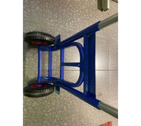 Тележка сделана на совесть. Швы хорошо сварены. 64 кг. везет легко. Фиксаторы ручки, только с одной стороны. Колеса накачаны, как литые.