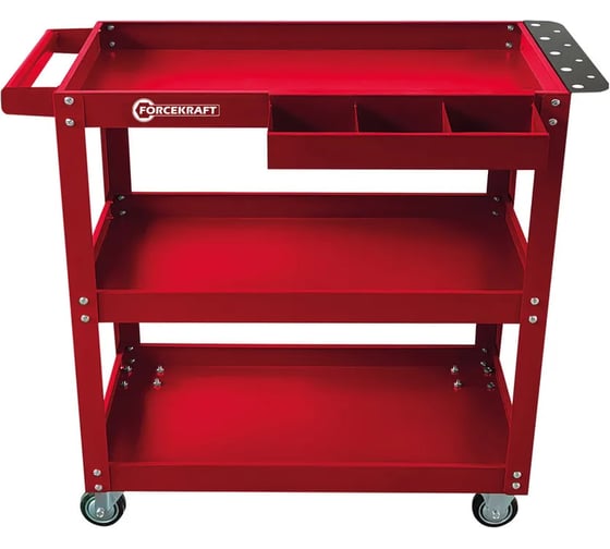 Тележка инструментальная 3-х полочная от бренда Forcekraft предназначена для обустройства рабочих мест и хранения инструмента в автосервисах, на станциях технического обслуживания и в других промышленных участках.