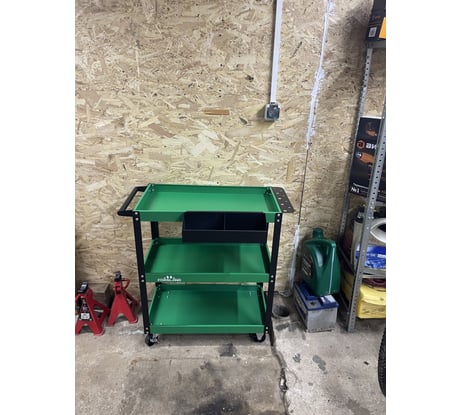 Хорошая тележка для гаража. Три полки отлично вмещают все, что нужно, колеса катятся легко и тихо. Качество 10 из 10👍🏼