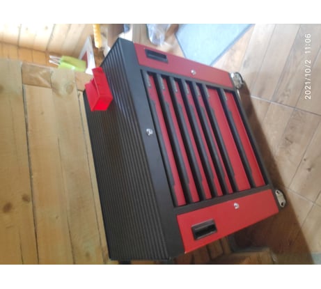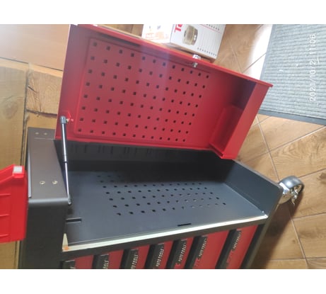 Тележка инструментальная (7 секций, красная, на колесах, с двумя боковыми ящиками) JTC S1070 обладает значительными габаритами, что позволяет разместить внутри достаточное количество инструмента и крепежа. Наличие семи ящиков упрощает систематизацию и облегчает поиск. Боковые секции создают дополнительное пространство для нескольких объемных инструментов. Верхняя часть тележки покрыта защитным материалом. Колеса оборудованы блокировочной системой для безопасности.