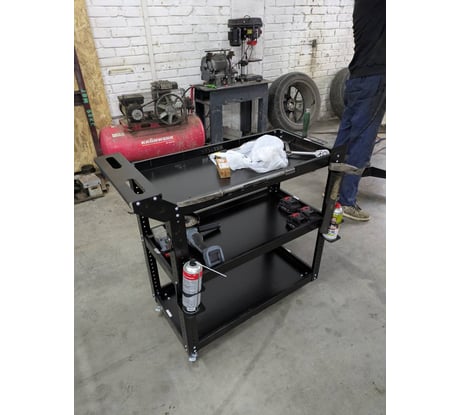 Тележка инструментальная Metalex Тип1 3 полки - это универсальная и удобная тележка, которая поможет Вам организовать хранение и перемещение Ваших инструментов внутри цеха или гаража. Главная особенность тележек Metalex – это возможность регулировки высоты установки всех полок. Перфорация на стойках сделана с шагом 25 мм. А так же, на все тележки Metalex можно установить большое количество различных аксессуаров. Тележка выдерживает нагрузку до 150 кг., а каждая полка до 75 кг. Высота бортика у полок – 50 мм. На тележке установлены два колеса с углом поворота 360 градусов и два колеса, с таким же углом порота, но со стопорным механизмом. Все тележки Metalex окрашены порошковой краской, которая защитит изделие на долгие годы, даже во время интенсивной эксплуатации.