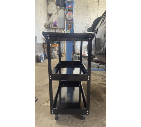 Конструкция продуманная: три вместительные полки позволяют разместить большое количество инструментов разного размера и назначения. Колёса удобные, тележка легко перемещается по мастерской или гаражу. Нет ощущения тяжести или неудобства при движении. Материал изготовления прочный и износостойкий, выглядит солидно и аккуратно. Тележка выдерживает нагрузку и сохраняет форму даже при активном использовании. Все инструменты находятся под рукой, рабочее место становится организованным и удобным