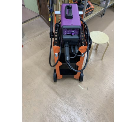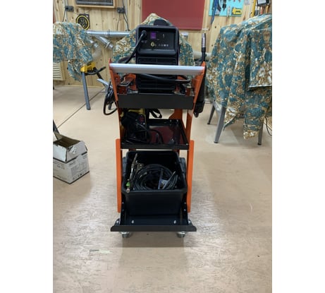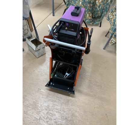 Очень удобная тележка. Доработали сбоку двумя кронштейнами для намотки пятиметровых сварочных кабелей в режиме парковки и перемещения. Аппарат стоит другой (не WIEDERKRAFT), обычный небольшой инверторный. Взяли вторую тележку, чтобы приспособить в мастерской под другие (не сварочные) задачи.
