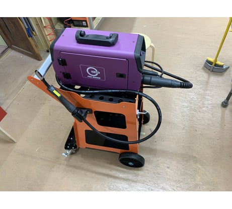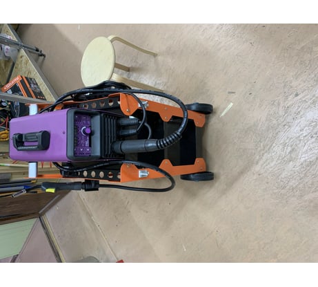 Очень удобная тележка. Доработали сбоку двумя кронштейнами для намотки пятиметровых сварочных кабелей в режиме парковки и перемещения. Аппарат стоит другой (не WIEDERKRAFT), обычный небольшой инверторный. Взяли вторую тележку, чтобы приспособить в мастерской под другие (не сварочные) задачи.