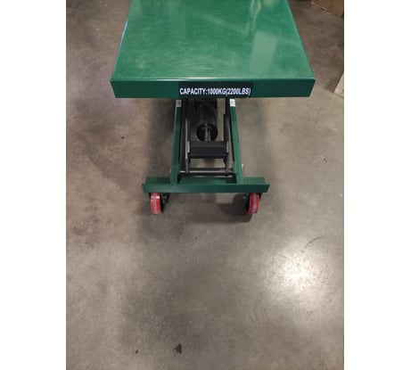 Тележка для тяжелых агрегатов в сервисе. 1000 кг берёт уверенно: двигатели, АКПП, редукторы. Гидравлика плавная, подъем контролируемый. Колеса большие, поворотные - ездит даже по неровному полу, что важно в сервисе, тем более, когда везешь ДВС за лям. Рама усиленная, не прогибается.