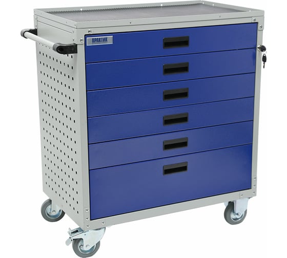 Тележка Промет WDS D-6.0 S30299033604 предназначены для надежного хранения, оперативного перемещения инструмента и оснастки в автомастерских, а также на производственных предприятиях. Используется в системе бережливого производства, для организации мобильных рабочих мест. Тележка поставляется в разобранном виде и отличается простотой сборки. Максимальная распределённая нагрузка на тележку – 180 кг, на малый ящик 24 кг, на большой ящик – 30 кг. Перфорация на боковым стенках позволяет разместить достаточное количество аксессуаров. Конструкцией предусмотрена возможность перестановки ручки для удобства эксплуатации. Тележка оснащена двумя поворотными колесами с тормозом и двумя неповоротными колесами без тормоза. Это позволяет удобно маневрировать тележкой по рабочей площадке. Верхняя полка тележки комплектуется маслобензостойким резиновым ковриком для удобного размещения инструмента.