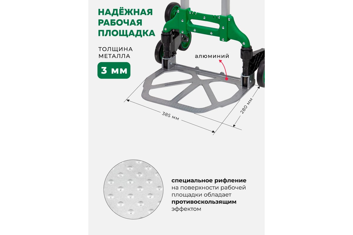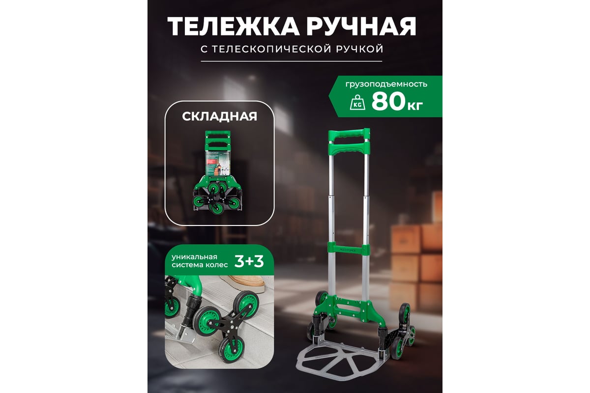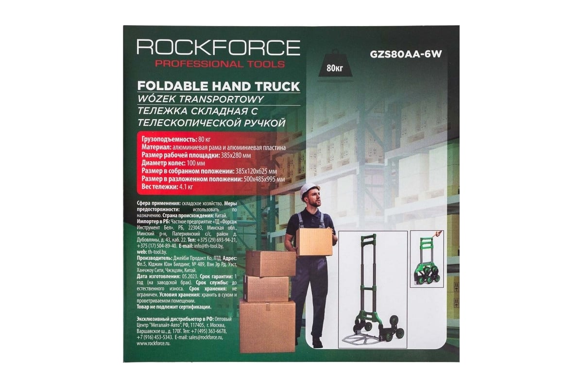 Ручная складная тележка с телескопической ручкой Rockforce грузоподъемность 80 кг, 500x485x995 мм в разложенном положении, 385x280 рабочая площадка, 100 мм-Ø колес RF-GZS80AA-6W(57771)