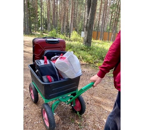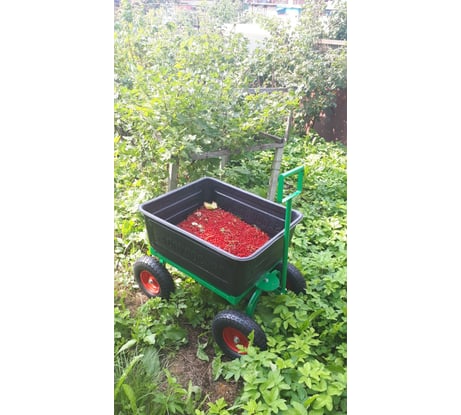 В саду не заменимый помщник. На стройке можно таскать песок и камни, в общем таскать на нем можно все что угодно. Производители постарались на 200 %, Калеса качественные, можно на месте разворачиватся.