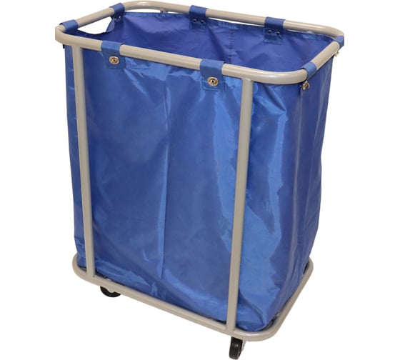 Тележка цельнометаллическая, уборочная для сбора и хранения грязного белья. Мешок брезентовый синего цвета на специальных защёлках.