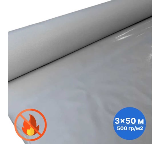 Тент без люверсов в рулоне Sebmet (тентовое полотно), ПВХ негорючий 500 г/м.кв, серый, 3x50м / 150м² TD0790500350П