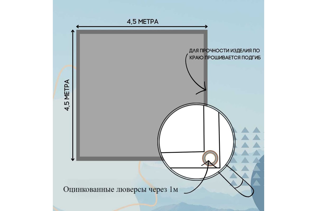Тент размером 4,5х4,5 м не является цельным полотном, он сшит из нескольких полос оксфорда, т.к. ткань оксфорд выпускается заводом изготовителем шириной 1,5-1,6 метра. Для того, чтобы добиться нужного размера тента, необходимо сшить несколько полотен. Общий размер изделия изготовлен согласно заявленному размеру.