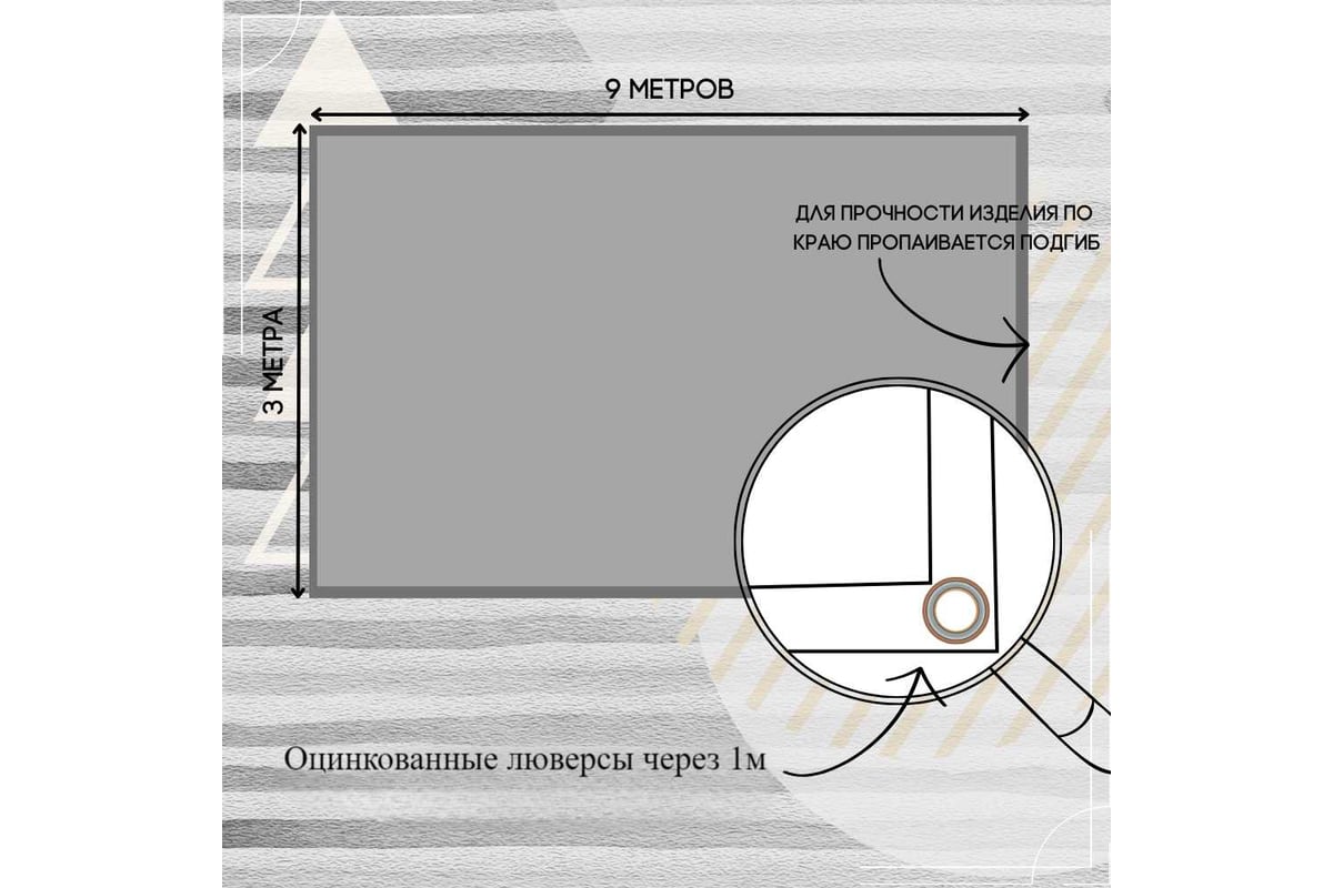 Полог размером 3x9м не является цельным полотном, он спаян из нескольких полотен ткани, т.к. пвх ткань выпускается заводом изготовителем шириной 2,5 метра. Общий размер изделия изготовлен согласно заявленному размеру.