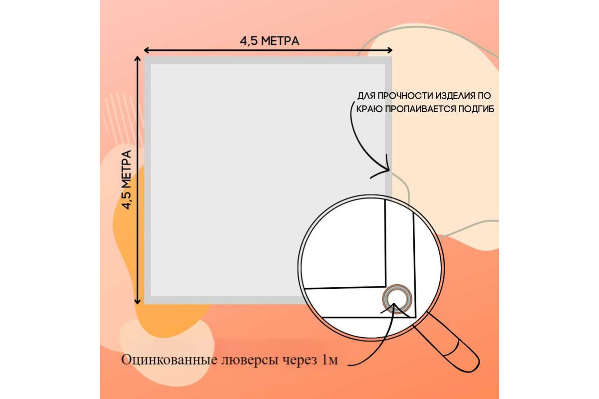Полог размером 4,5x4,5м не является цельным полотном, он спаян из нескольких полотен ткани, т.к. пвх ткань выпускается заводом изготовителем шириной 2,5 метра. Общий размер изделия изготовлен согласно заявленному размеру.