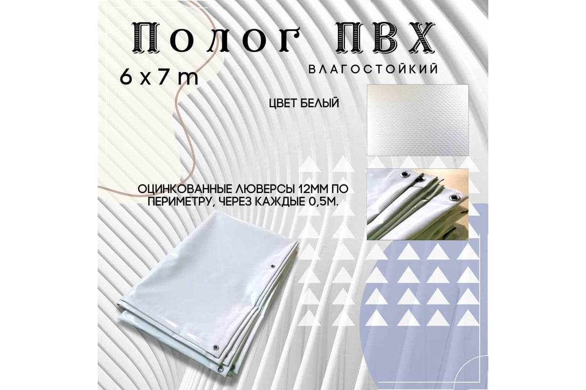 Тент полог ПВХ 6x7м 630г/м2 влагостойкий белый ПК ЭЛИТТЕНТ 6X7PVC630WH изготовлен из плотной ткани ПВХ белого цвета, для прочности изделия по краю пропаивается подгиб. Для удобства крепления изделия по периметру установлены оцинкованные люверсы диаметром 12мм через 0,5м. Все стыки спаяны с помощью термосварочного оборудования.