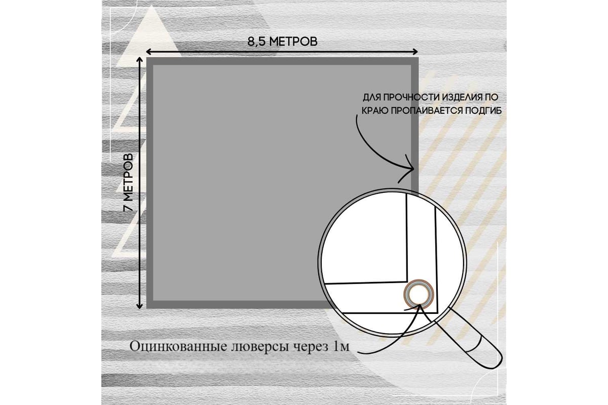 Полог размером 7x8,5м не является цельным полотном, он спаян из нескольких полотен ткани, т.к. пвх ткань выпускается заводом изготовителем шириной 2,5 метра. Общий размер изделия изготовлен согласно заявленному размеру.