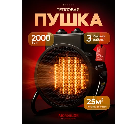 Мощная электрическая тепловая пушка 2 кВт — универсальное решение для обогрева дома, гаража и других помещений от бренда «Молодцов»