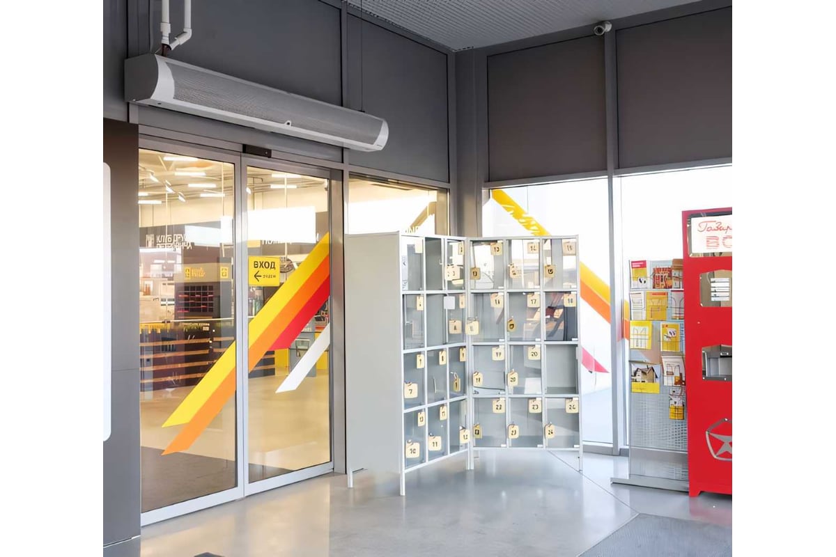 Тепловая завеса Тепломаш КЭВ-60П3141W 133003 устанавливается в магазинах или офисах в дверной проем высотой от 2 до 3.5 метров. В комплект поставки входит пульт управления завесой. Устройство имеет оригинальную конструкцию соплового аппарата, которая формирует равномерный воздушный поток.