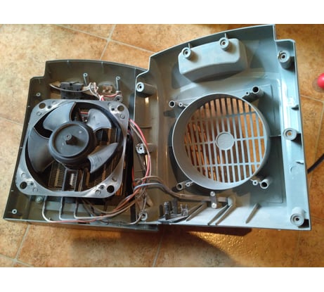 Собственно, отзыв полностью положительный, несмотря на мелкие недочеты данного тепловентилятора (далее по тексту "девайс" :) ). Купил я сей девайс в ноябре 2017г, и он выполнял на первом объекте роль дополнительной тепловой пушки. Мощности 1,5кВт мне хватало, шум при работе совершенно не напрягал, т.е. крыльчатка и обороты двигателя подобраны неплохо. Ножек резиновых снизу корпуса нет, но по полу не елозит. Легкий, переносить удобно. Внутри корпуса монтаж аккуратный. Но год назад "случилось страшное" :) - девайс упал со стола, где находился, поскольку я ногой зацепился за его питающий шнур... Корпусу девайса хоть бы хны, но отвалилась одна лопасть на крыльчатке. С тех пор этот тепловентилятор я не использую (лежит на полке), хотя он работает, если включить, но с ощутимыми вибрациями из-за дисбаланса. В месте выхода шнура питания из корпуса лопнула внешняя изоляция, но это уже ерунда. В целом, девайс меня все время радовал своей неприхотливостью и функционалом, но потом зачем-то внезапно взял и ушел на пенсию :).