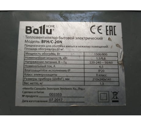 Расходные материалы для тепловентилятора Ballu BFH/C-20