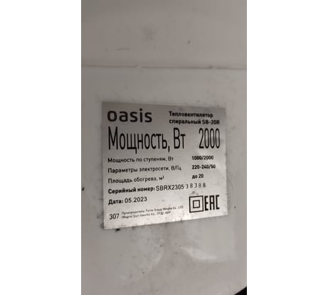 Отзывы о тепловентиляторе OASIS SB-20R "" 4640130905835