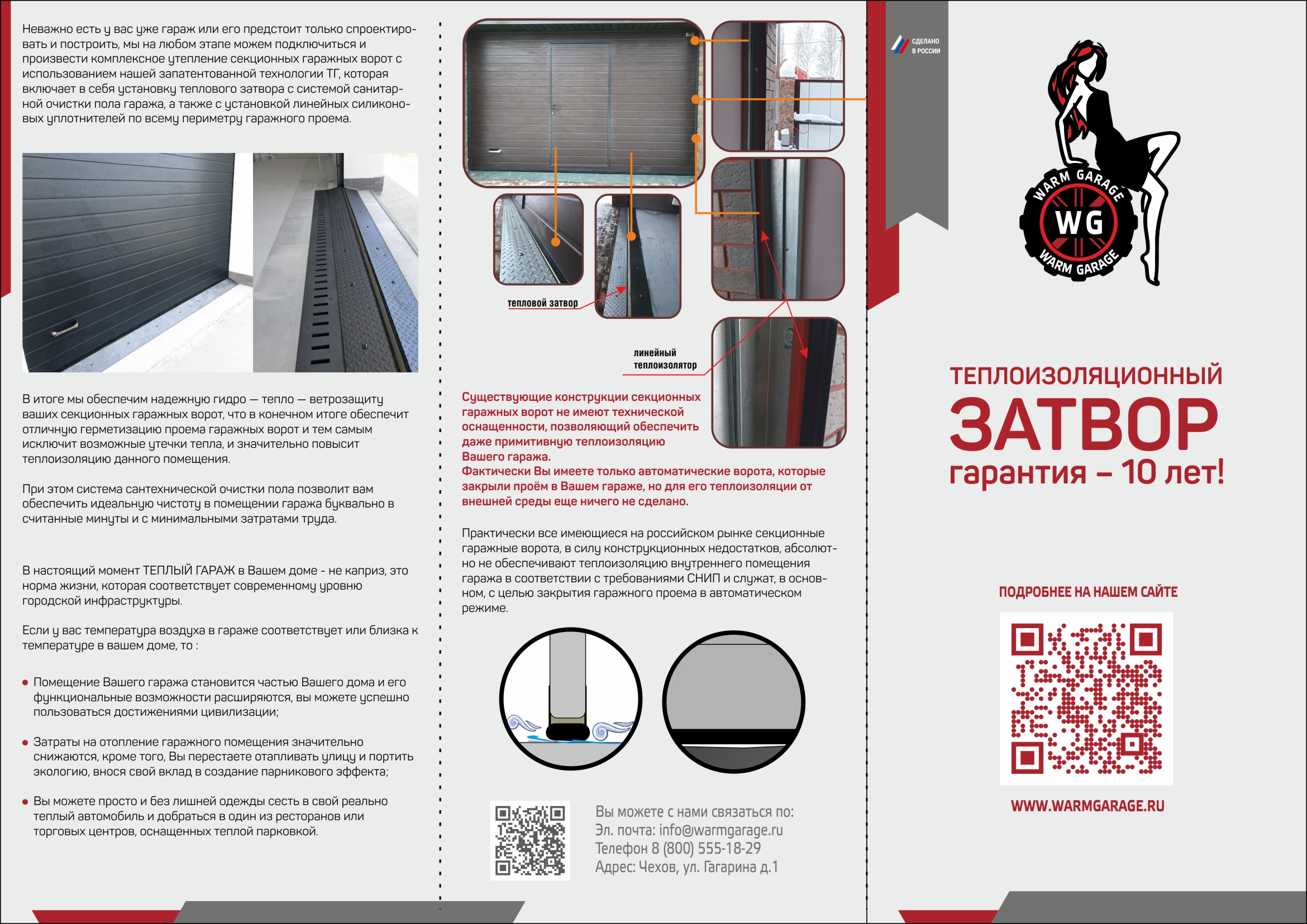Тепловой затвор для ворот гаража Теплый гараж WarmGarage zatvor 342 обеспечивает надежную гидро-тепло-ветрозащиту секционных гаражных ворот, что в конечном итоге даст отличную герметизацию проема гаражных ворот и исключит возможные утечки тепла, значительно повысит теплоизоляцию данного помещения. Система сантехнической очистки пола позволит обеспечить идеальную чистоту в помещении гаража в считанные минуты и с минимальными затратами труда.