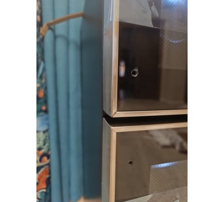 Шкаф заляпан пятнами краски (возможно), просто тряпкой не оттирается. Поцарапан угол дверцы. Подсветка белая а не синяя. Доверие к вашему магазину утрачено ((