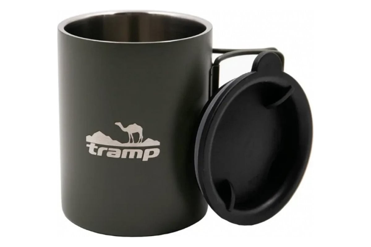 Термокружка со складными ручками и поилкой Tramp оливковый TRC-136.12 выполнена из высококачественной полированной нержавеющей стали.