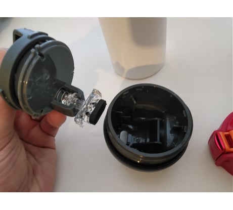 Красивый синий цвет, хороший пластик на крышке, удобно разбирается и можно хорошо промыть крышку. Себе заказала белую, а парню синюю, все отлично
