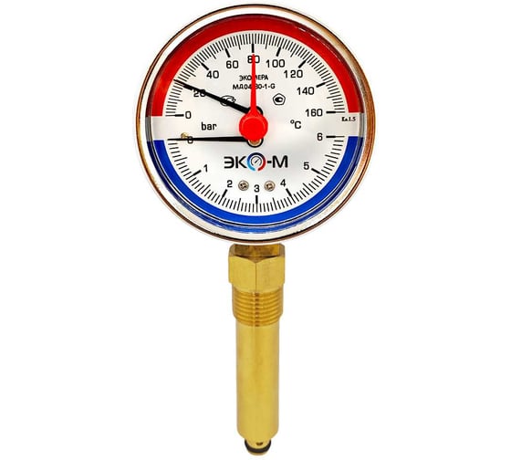 Термоманометр ЭКО-М МД04-80мм 0..6бар 0..160С G1\4 L=60mm с переходником на G1\2 (ТН ВЭД 9026204000) МД04-80-G-6-160-L-60-РИ