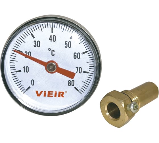 Термометр горизонтальный ViEiR Ф40 мм, 1/4, до 80 C, для систем отопления и водоснабжения YL19