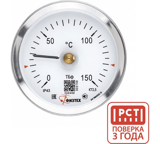 Термометр накладной ПО Физтех, АО ТБф-120Н 0…150C кт.2,5 d.63 IP43, с пружиной 4687207068536