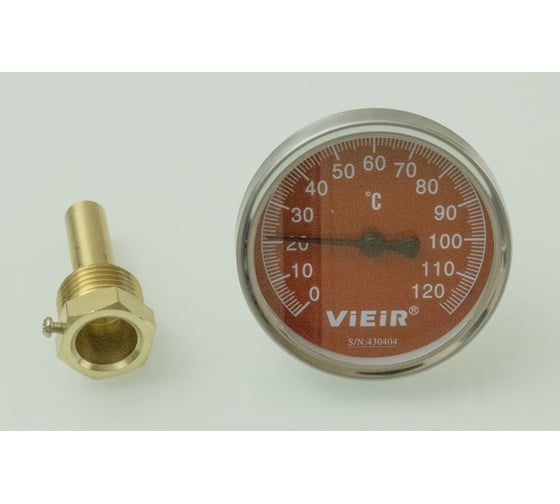 Термометр ViEiR с гильзой, красный, Ф63 мм, 1/2, до 120 C, для подачи в системах отопления YL18-K
