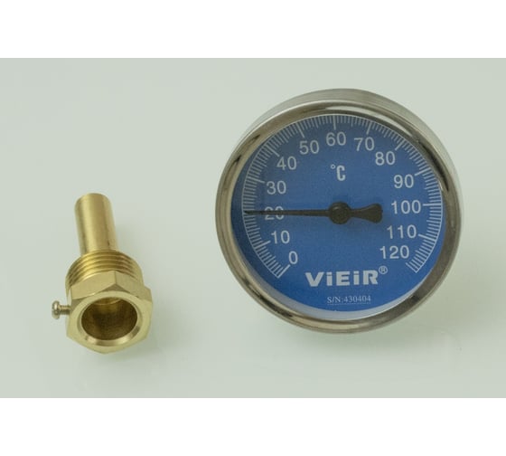 Термометр с погружной гильзой, синий, Ф63 мм, для контроля температуры на обратной линии систем отопления. Помогает быстро оценить режим работы и держать параметры под контролем без лишних сложностей; бренд ViEiR упомянут для точной идентификации модели YL18-C.