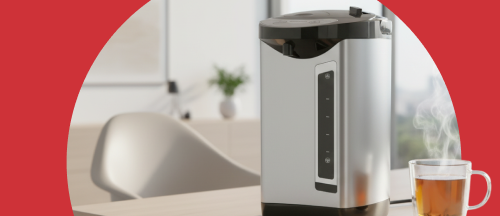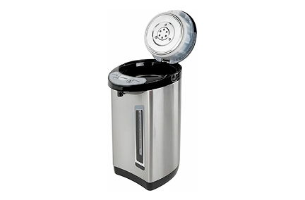На корпусе размещена шкала уровня воды для контроля объема жидкости. Корпус дополнен прочной ручкой для удобного переноса устройства. Модель имеет вращающуюся подставку – вы можете поворачивать термопот в любую сторону, не поднимая над столом.