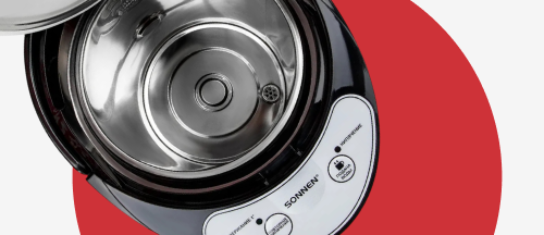 Объем термопота SONNEN TP-60 составляет 6 л. Благодаря мощности 900 Вт устройство быстро нагревает воду до 100 °C, что делает его оптимальным решением для большой семьи или офиса. Воду можно наливать тремя способами: электронасосом, ручной помпой и нажимом кружкой. На верхней части расположена панель управления, с помощью которой можно налить или повторно нагреть воду. Также на ней размещены LED-индикаторы, которые загораются, когда изделие поддерживает температуру или кипятит воду.