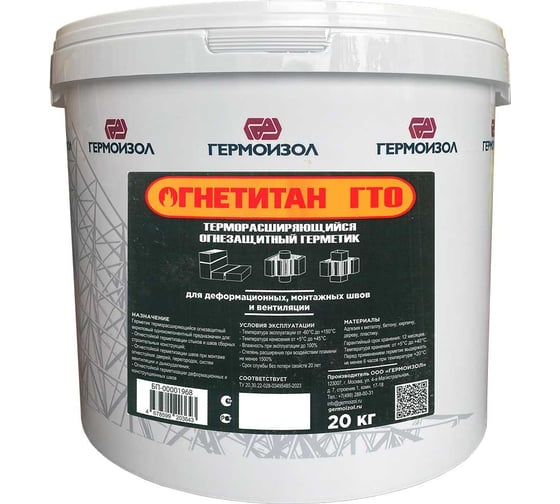 Терморасширяющийся огнезащитный акриловый однокомпонентный герметик Огнетитан Гто ведро, 20 кг БП-00001968