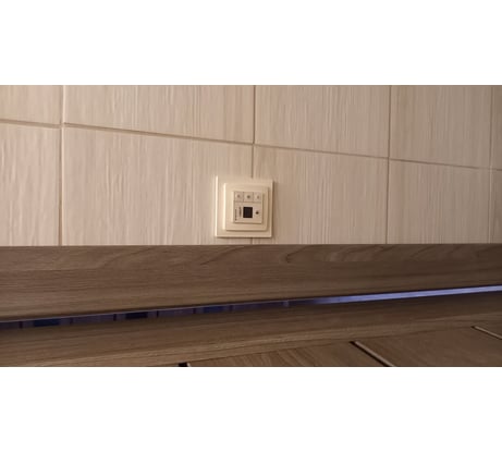 Удобные кнопки, хорошо читаемый дисплей. Есть рамочки (если вы хотите встроить в группу). Цвет бежевый очень подошел к плитке. Схема подключения понятная даже новичку, все подписано.