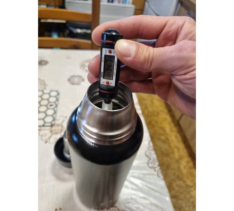 Арктика как всегда оправдывает цену. Кипяток за 14 часов остыл до 74,7 градусов. Уже 4-й термос этой фирмы. Для еды, 2,2литра, термокружка и вот на 1,2 с ситечком взял. Может конечно не для зимней рыбалки, но мне на 5+!