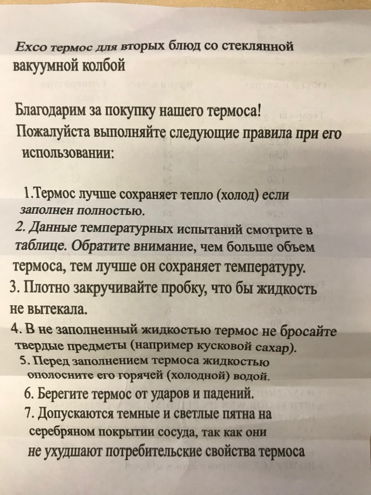 Внимание! Не забудьте ополоснуть термос кипятком перед тем, как заливать в него жидкость. Колба прогреется и лучше держит тепло.